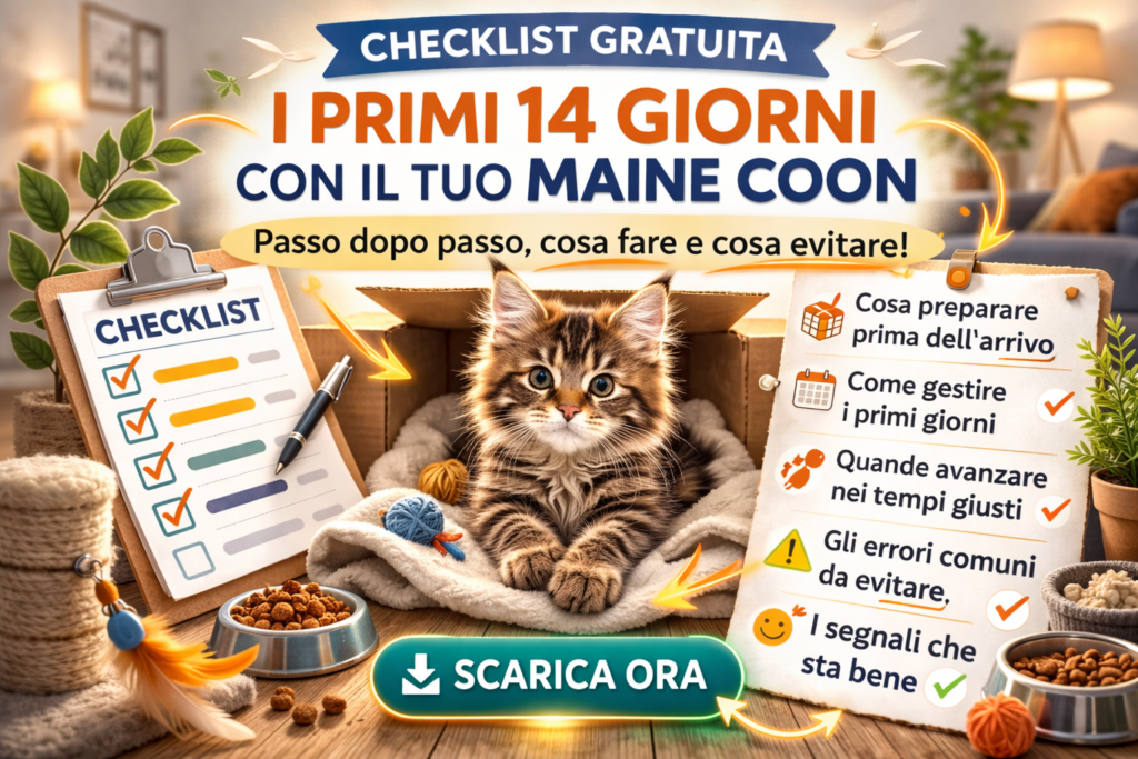 Ecco perchè abbiamo creato la prima checklist completa e testata per i primi 14 giorni con il tuo Maine Coon